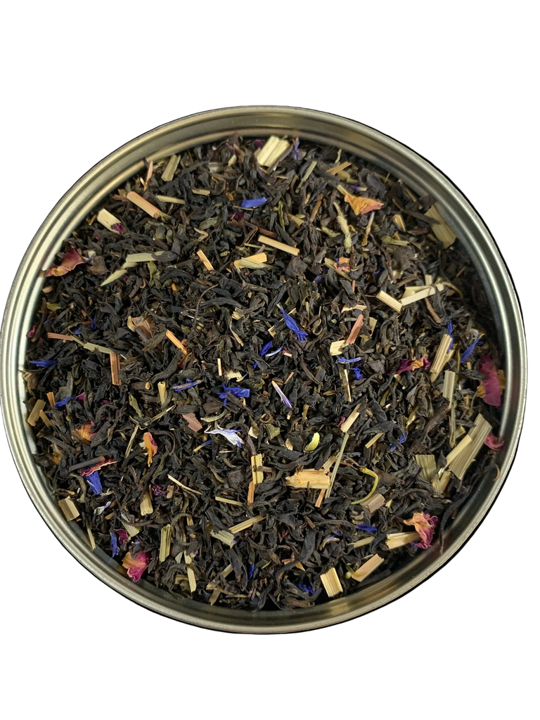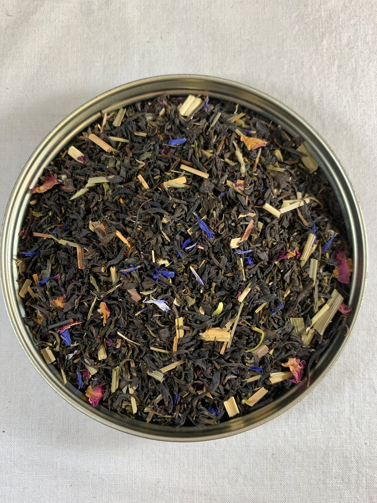 Ingredients: Black tea, green tea, natural flavors, lemongrass, rose petals, cornflower, jasmine blossoms